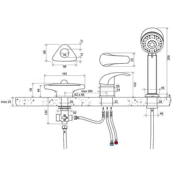 Врезной смеситель каскадный для ванны Ravak Rosa X07P003
