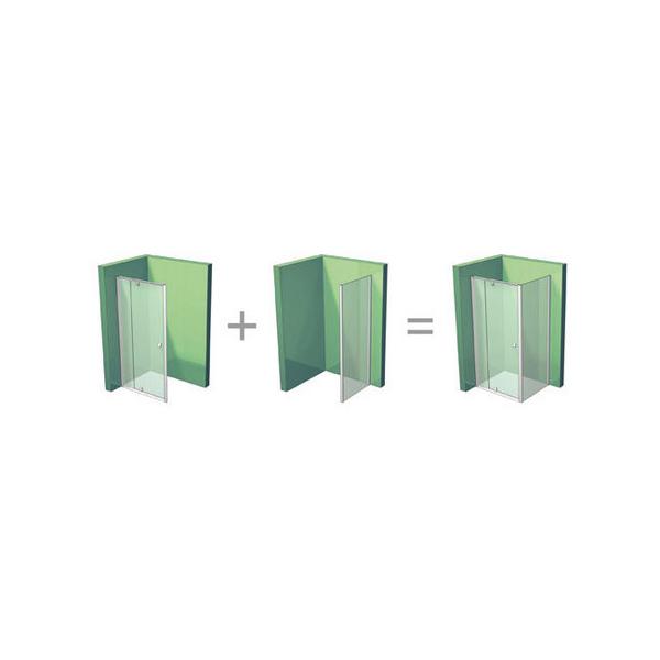 Неподвижная стенка из одной целой части комбинируется с душевыми дверями Pivot.